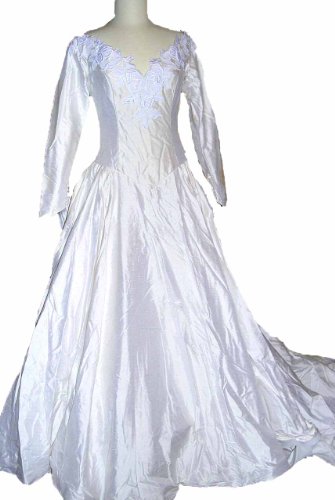 Ivory Wedding Dress Gown, Fingertip Length Sleeves, Double V Neck, Wize 8/10 Ilb77 Review