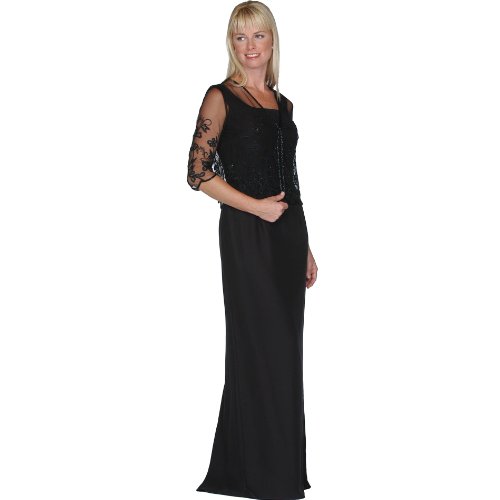 Black Formal Evening Dress with Illusion Jacket - Mother of Bride & Groom Dress. Mothers Dress Gown. Womens Long Evening Gown by Sean Collection (7253) Review