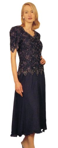 Great Fitting Chiffon Tea Length Dress Black or Navy Review